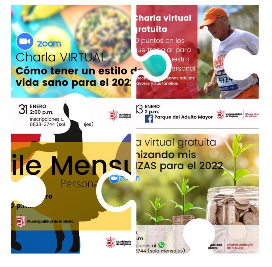 Desde Desarrollo Social de la Municipalidad de Alajuela a través de la oficina de la Mujer este mes de enero presenta una variada agenda de actividades de formación en plataformas digitales.