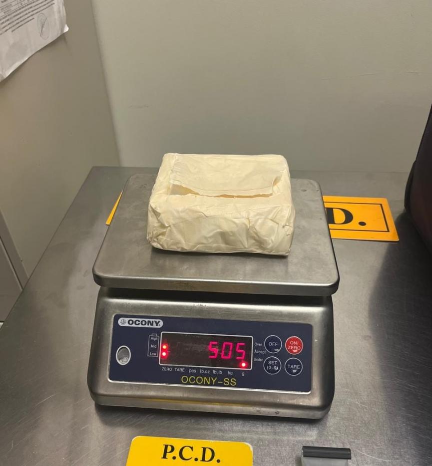 Este trabajo tuvo lugar en una de las salas de abordaje de esta terminal aérea, en donde, tras una inspección, los oficiales observaron algunas inconsistencias relacionadas con su equipaje, por lo cual activaron sus protocolos para realizarle una revisión detallada con ayuda de canes especializados en la detección de estupefacientes.