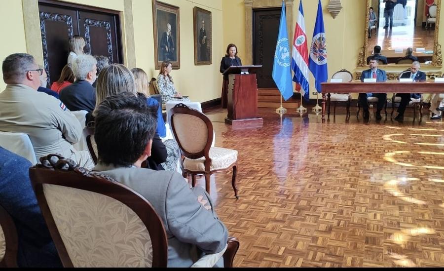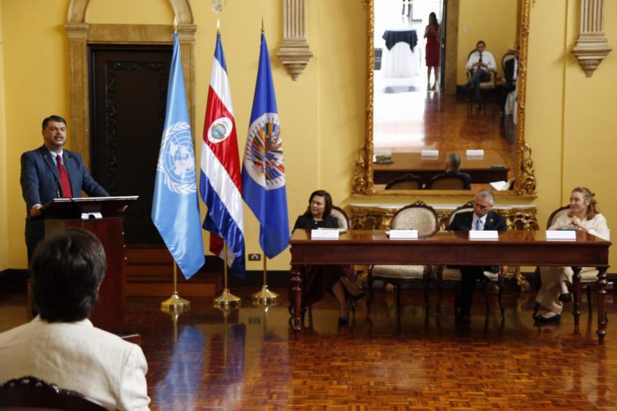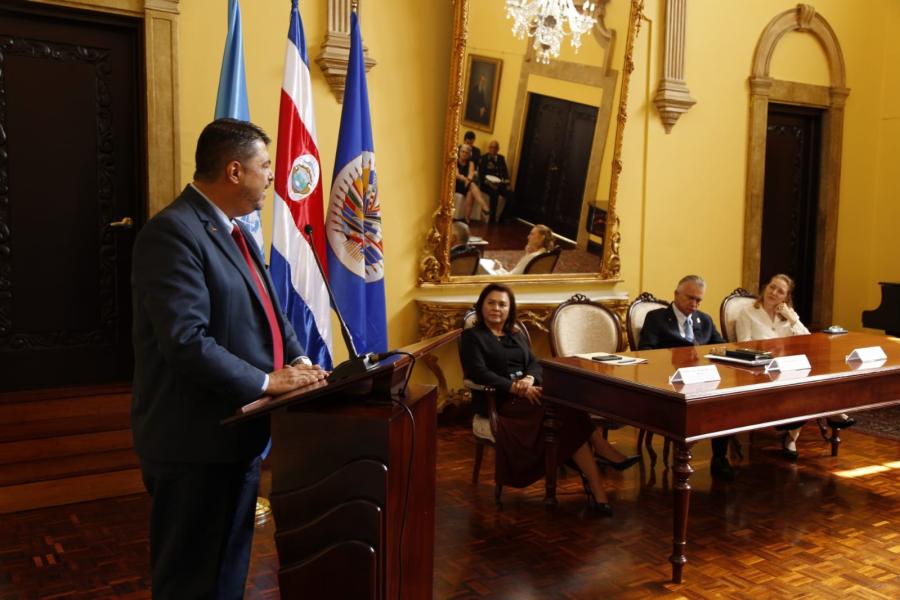 En la actividad participó el ministro de Seguridad Pública, Mario Zamora Cordero, el ministro de Relaciones Exteriores y Culto, Arnoldo André Tinoco, embajadores y funcionarios de la OEA y la ONU.