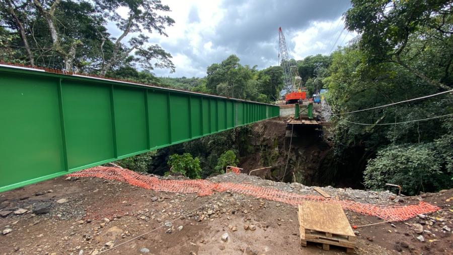 Una nueva fase en el proceso constructivo del nuevo puente sobre el río Poás, sobre la ruta nacional 107, comenzó desde el viernes anterior, como es la colocación de las vigas metálicas del puente.