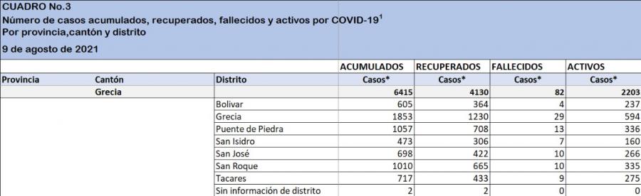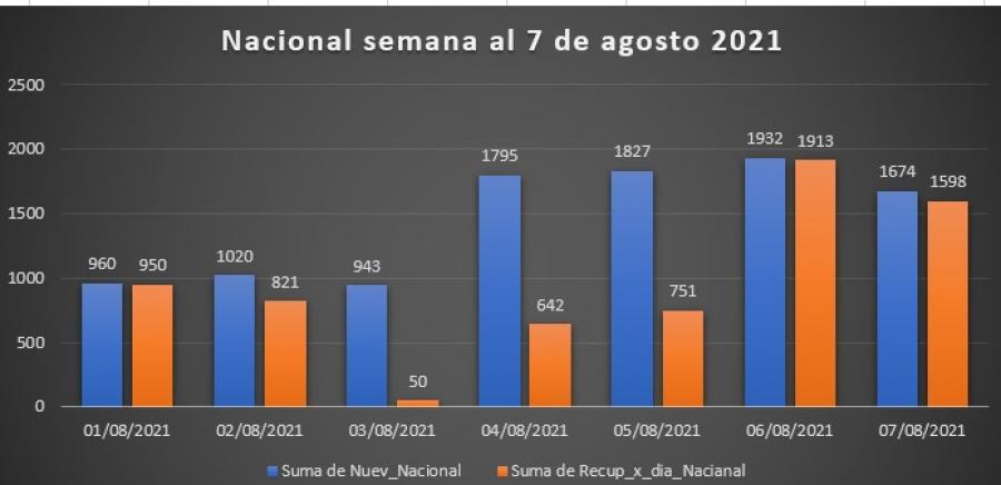 Informe estadístico para la semana de información del Ministerio de Salud comprendida entre el domingo 1 de agosto y el sábado 7 de agosto de 2021.