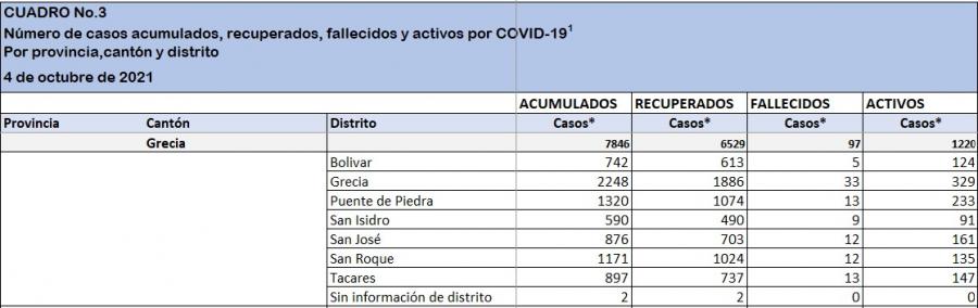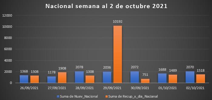Informe estadístico para la semana de información del Ministerio de Salud comprendida entre el domingo 26 de setiembre y el sábado 2 de octubre de 2021.