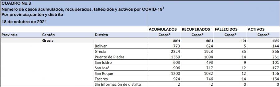 Informe estadístico para la semana de información del Ministerio de Salud comprendida entre el domingo 10 de octubre y el sábado 16 de octubre de 2021.