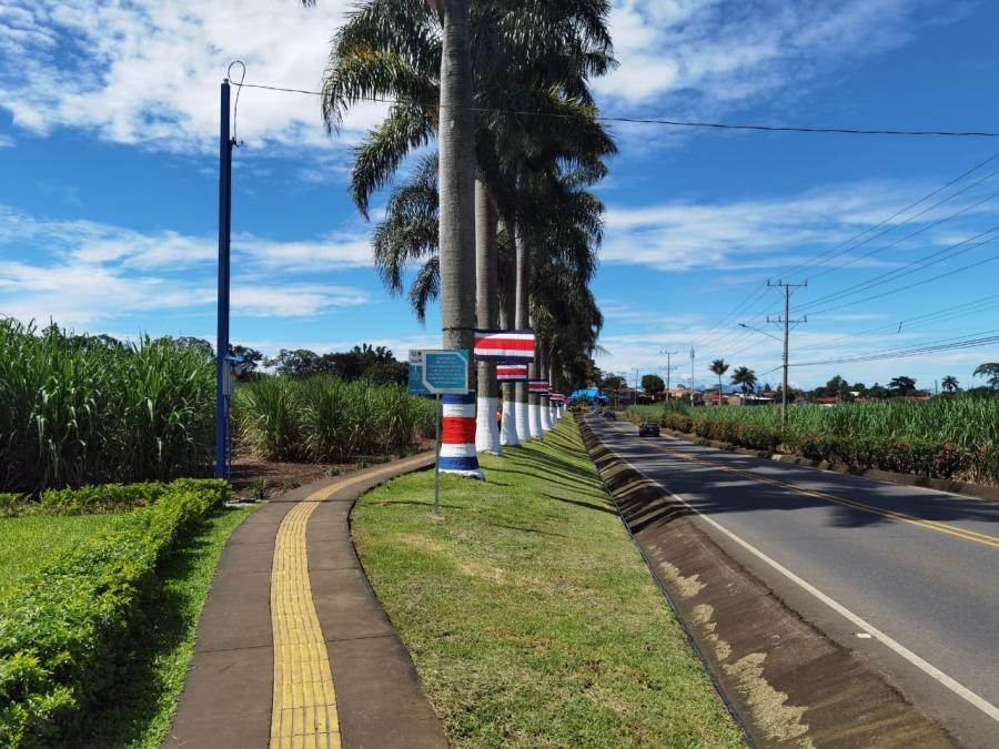 Adicional a la construcción de la fuente de agua, quienes recorran la recta durante el mes de setiembre podrán sentir el ambiente patrio que se genera gracias a la decoración con banderas de Costa Rica sobre las emblemáticas palmeras, iniciativa que este año se extendió al sector de la plaza de deportes. Además, las históricas casas que dan la bienvenida al territorio cooperativista se convirtieron en un reflejo de la tradicional casa costarricense, legado de nuestros antepasados y alma de nuestra patria actual.