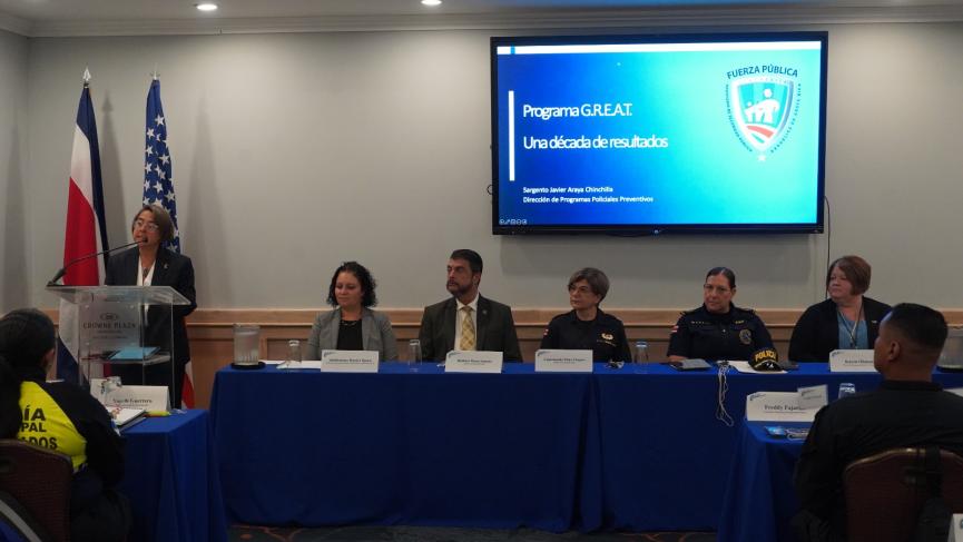 Esta semana inició una nueva capacitación para 40 agentes de la Fuerza Pública y policías municipales en el Programa GREAT (Gang Resistance Education and Training), con el objetivo de fortalecer la prevención de la violencia juvenil y promover la seguridad comunitaria.