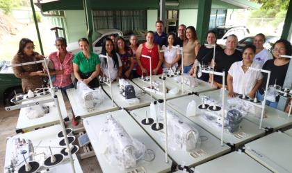 Emprendedoras de Grecia impulsarán sus pequeños negocios de costura con los equipos donados por el Inder