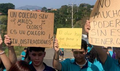 Estudiantes del CTP de Bolívar se manifiestan contra malos olores provenientes de granja avícola