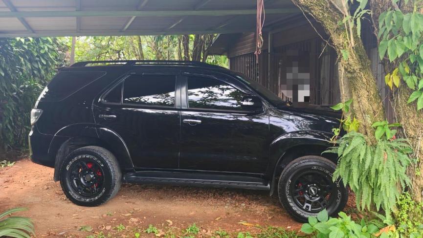 Los agentes judiciales por medio de las diferentes diligencias de investigación identificaron a este hombre como uno de los sospechosos de participar en el robo del mencionado carro, por lo que al ser las 6:00 a.m., de hoy allanaron una vivienda en la localidad de Tambor de Alajuela, donde detuvieron a este sujeto y han decomisado teléfonos celulares, pasamontañas, munición para arma de fuego tipo pistola, partes de un carro que se determinará por medio de los respectivos análisis si corresponden a algún vehículo reportado como robado. También, se decomisó un carro 4x4, al parecer podría ser el utilizado el día en que se dio el robo.