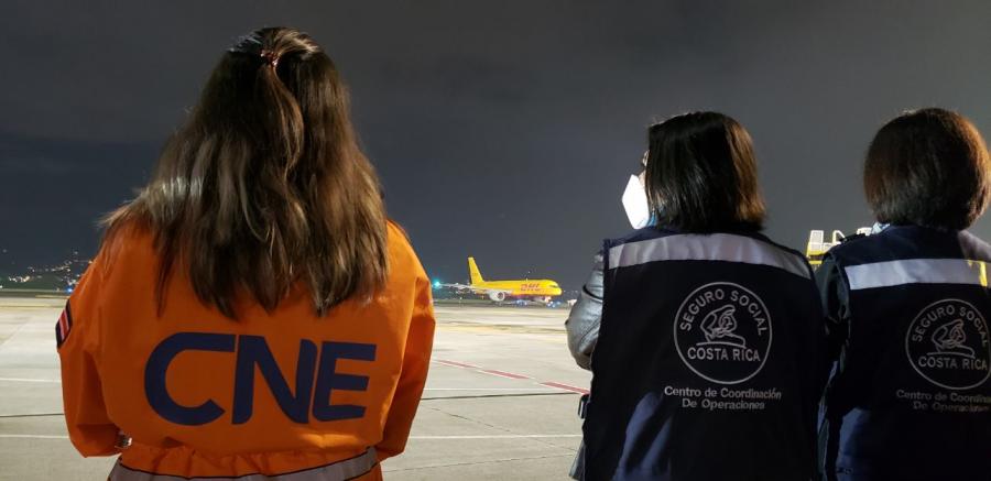 En 11 meses de ingresos, Costa Rica reporta 60 lotes de vacunas. El de esta noche llegó a las 08:46 p. m. a Base 2 del aeropuerto internacional Juan Santamaría.