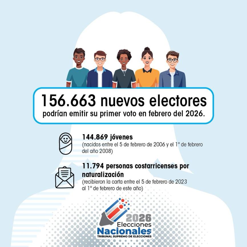 Adicionalmente, si a esa cantidad se suman 11.794 personas que obtuvieron su naturalización costarricense, y recibieron su respectiva carta o documento que oficializó dicha condición, en el periodo que va del 5 de febrero de 2023 al 1º de febrero de este año, se llega a la cifra de 156.663 nuevos electores que podrían emitir su primer voto en febrero del 2026.