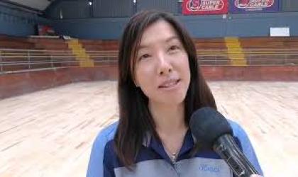 Lucía León Lee representante del Grupo Cicadex se refiere al avance en la instalación del piso de madera del Gimnasio del Polideportivo Griego.