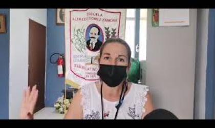 Laura Rodríguez, educadora de la escuela Alfredo Gómez de Barrio Latino se refiere a la campaña "Manos Solidarias por Mi Comunidad" para ayudar a las familias damnificadas por los deslizamientos de la semana pasada.