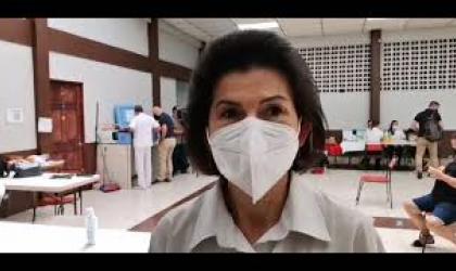 Leda Ramírez, directora del Área de Salud de Grecia se refiere a la campaña de vacunación contra el COVID-19 del grupo de 40 años en adelante sin factores de riesgo que se realiza en Salón Parroquial.